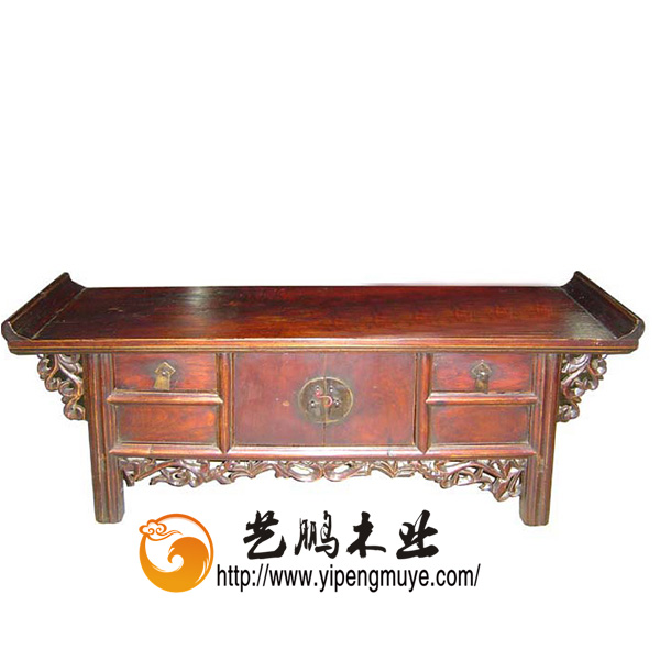 此电视柜采用翘头柜样式,线条不呆板。细节处加有东阳木雕,彰显中式古典气息。储物功能也不是强大。另外以老榆木为原材料的家具具有木性坚韧,力学强度较高,耐腐蚀性强等优点。其强度与硬度适中,适合雕刻,可满足顾客个性化定制的需求。除此之外,艺鹏作为老榆木古典家具的领军者,也融会贯通的将老榆木现代设计满足更广大顾客需求。